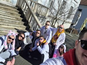 Szerkesztőségünk két tagja csatlakozott a veszprémi csapatba. A csapat „vezetője”, Dr. Guzsvinecz Tibor egyetemi docens ötlete volt, aki fél-kanizsai származása létére 2014 óta látogatja ezt a programot a veszprémi Pannon Egyetem számos hallgatójával. A törzstagok általában mindig vele tartanak, viszont többször is volt változás mind létszám, mind személyek terén. Különleges ismertetőjele a veszprémieknek, hogy pár éve már laborköpenyben járják végig a várost, aminek hátára humoros és személyhez illő képeket, szövegeket festenek fel.
